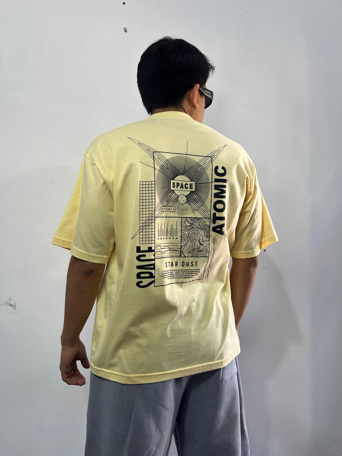 Remera oversize Atomic, confeccionada en algodón suave y respirable. Con un diseño trasero inspirado en el espacio y la frase Space Atomic Stardust, aporta un estilo moderno y auténtico ideal para outfits urbanos.
