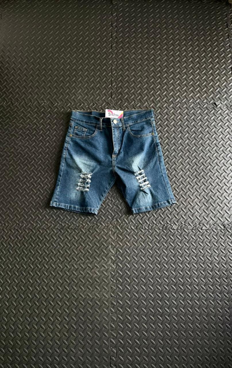 Bermuda de jean con corte skinny que se ajusta al cuerpo, diseñada con detalles de roturas al frente para un look moderno y street. Su lavado azul intenso le da el balance justo entre estilo urbano y versatilidad, ideal para outfits frescos y con carácter.