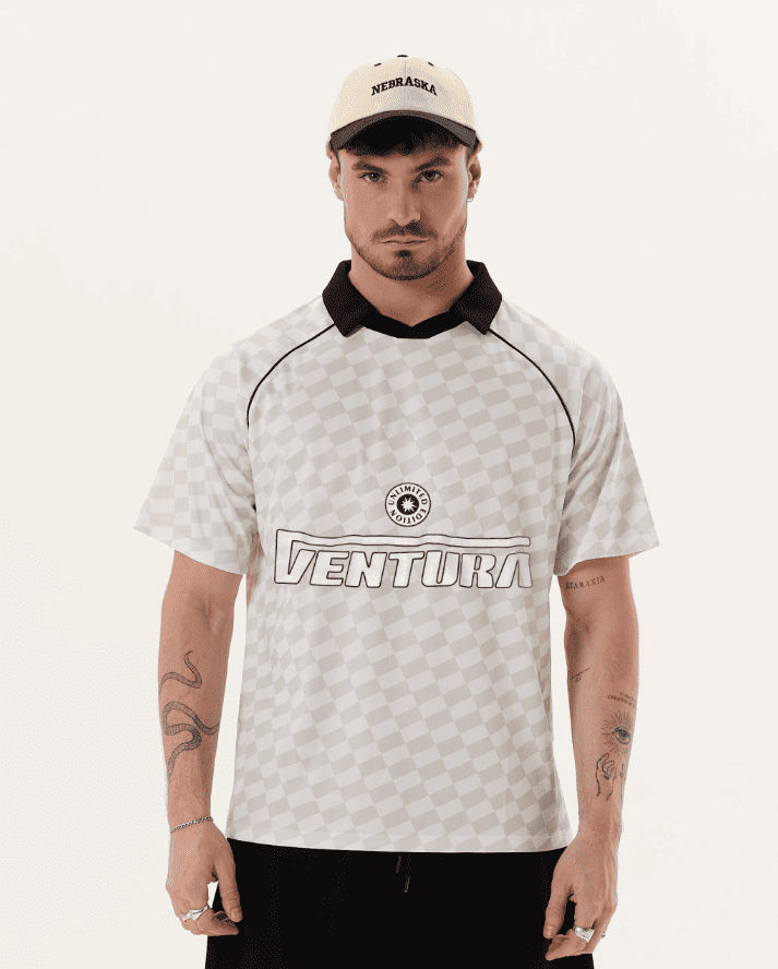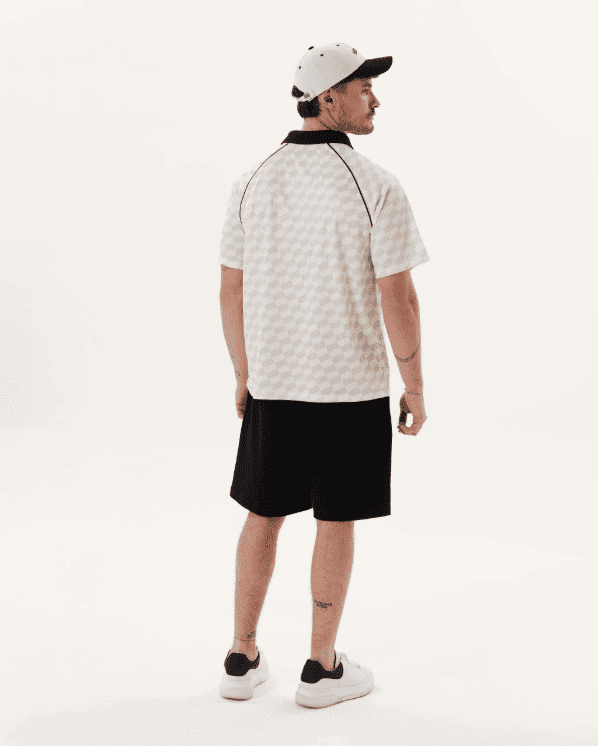 Confeccionada en Tela simil Dryfit (sublimada). Corte regular. Ajuste clásico. Cuenta con diseños de estampa personalizados, vivo en la costura de la manga ranglan, solapas en cuello para simular cuello chomba y diseños de estampa al frente y espalda.